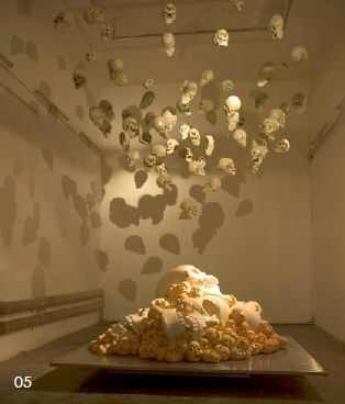 这一批作品的突出特点是强化对比,在形体大小的强烈对比中有意造成密集和繁复。乍一看,有种爆米花在微波炉里噼啪炸响、膨胀爆出的感觉。这种不可遏制的繁殖力是唐勇对生命存在的体会。比如精子,一次喷射出成千上万,在显微镜下都带着尾巴在向前游动,但这些可爱的小家伙能有多少成为生命的事实?小青蛙也是如此,在日益污染的生态环境中它们何去何从?而人呢,像兵马俑一样成为消费大军的人,文化工业和数字图像灌铸的人,还有将来被基因技术、美容医学改变的人,其中多少人还有真正的自我而能够独立的生存?唐勇的雕塑借助数码时代的图像特征,非常机智地将生命的繁殖力和数像的复制性结合在一起,使其作品既新鲜又耐看,在好看中显得特别,在特别中显得异样,在异样中揭示出精神心理深度的矛盾。